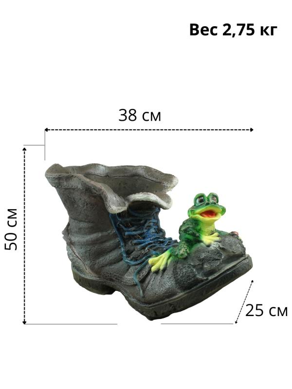 Ищете чем дополнить дизайн дома или же украсить сад? Кашпо "Башмак с лягушкой" станет оригинальным решением, которое не только предаст красоту Вашему интерьеру для дома и сада, а также привлечет взгляд гостей. Декоративное кашпо башмака с лягушкой выполнено из искусственного камня - полистоун. Благодаря отсутствию микротрещин и пор, в теле камня не "заселяется" грибок и разные болезнетворные бактерии, кроме того хорошо переносит перепады температур. Фигура башмака с лягушкой для сада, дачи и дома, является отличной идеей для подарка друзьям и близким, которые будут удивлены и рады такому необычному сюрпризу. Высота(50),ширина(25) и длина(38). Обратите внимание на то, что каждое изделие мы тщательно упаковываем в пузырчатую пленку и коробку, чтобы декоративное изделие пришло в полной целостности и сохранности. Не забывайте, что в нашем магазине представлен большой выбор интерьерных статуэток для дома, сада и дачи.