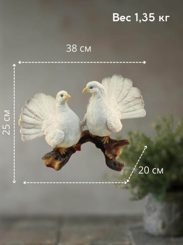 Садовая фигурка "Голуби пара на ветке (белые)" станет одним из самых оригинальных элементов декора Вашего ландшафтного дизайна. Голуби парные прекрасно дополнят альпийскую горку, зеленый газон и даже искусственный водоем. Прекрасный дизайн белых голубей на ветке не оставит равнодушных и привлечет взгляд Ваших гостей. Материал фигурки изготовлен из искусственного камня - полистоун. Благодаря отсутствию микротрещин и пор, в теле камня не "заселяется" грибок и разные болезнетворные бактерии, кроме того хорошо переносит перепады температур. Фигурка белых голубей на ветке для сада может послужить отличной идеей для подарка друзьям и близким, которые будут приятно удивлены и рады такому необычному сюрпризу.