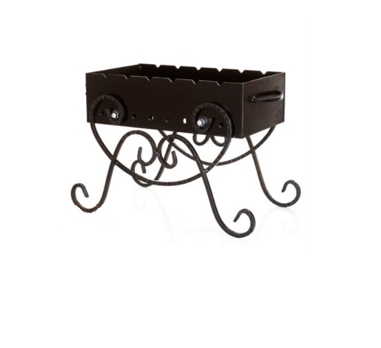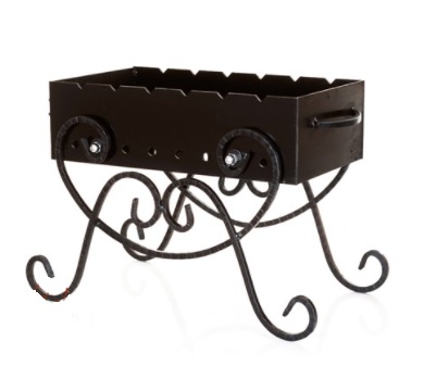 Кованый мангал 861-32R с изящными коваными ножками. А специальная подставка для дров внизу, поможет сохранить дрова в сухости. Конструкция из кованого металла украшена, изящной ажурной ковко.