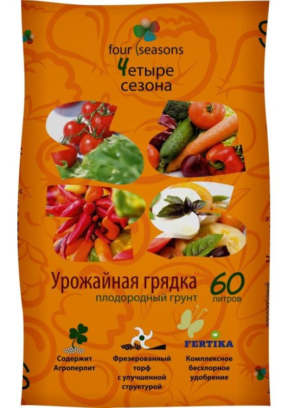 Уникальная рецептура смеси «Четыре Сезона урожайная грядка» разработана профессионалами на основе многолетнего опыта работы в овощных хозяйствах. Содержит Агроперлит, улучшающий структуру и водно-воздушный баланс почвы. В состав грунта входит комплексное бесхлорное минеральное удобрение.