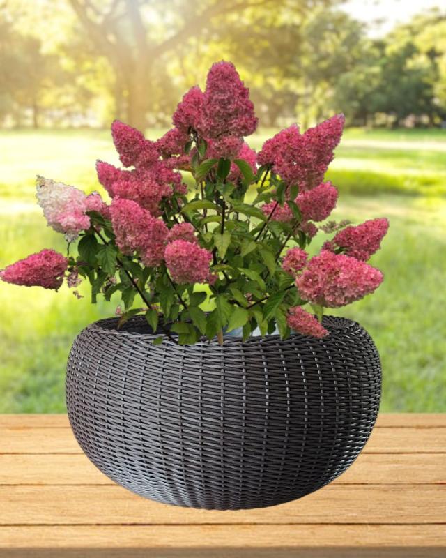 Кашпо подходит для различных видов растений, благодаря своему большому объему и широкой диаметру. Высаживать в такое кашпо можно как цветы и кустарники, так и различные хвойники с поверхностной корневой системой. Для деревьев со стержневой корневой системой больше подходит Клумба из ротанга 80л от Мастерской INDIVITO