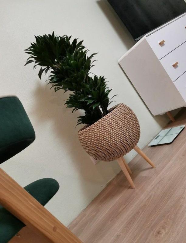 Ножки кашпо выполнены из массива дерева, что придаёт конструкции устойчивость и добавляет природной гармонии в общий дизайн.