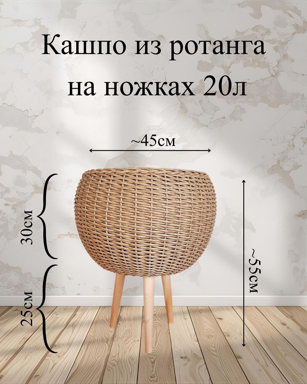 Искусственный ротанг не подвержен рассыханию и не выгорает на солнце, что делает его идеальным выбором для длительного использования. Оптимальный объем кашпо 20л делает его подходящим для различных видов растений. Растение можно посадить как непосредственно в кашпо, предварительно использовав дренаж, так и в подходящий по размеру горшок с отверстиями для отхода лишней влаги и затем поместить его в кашпо.