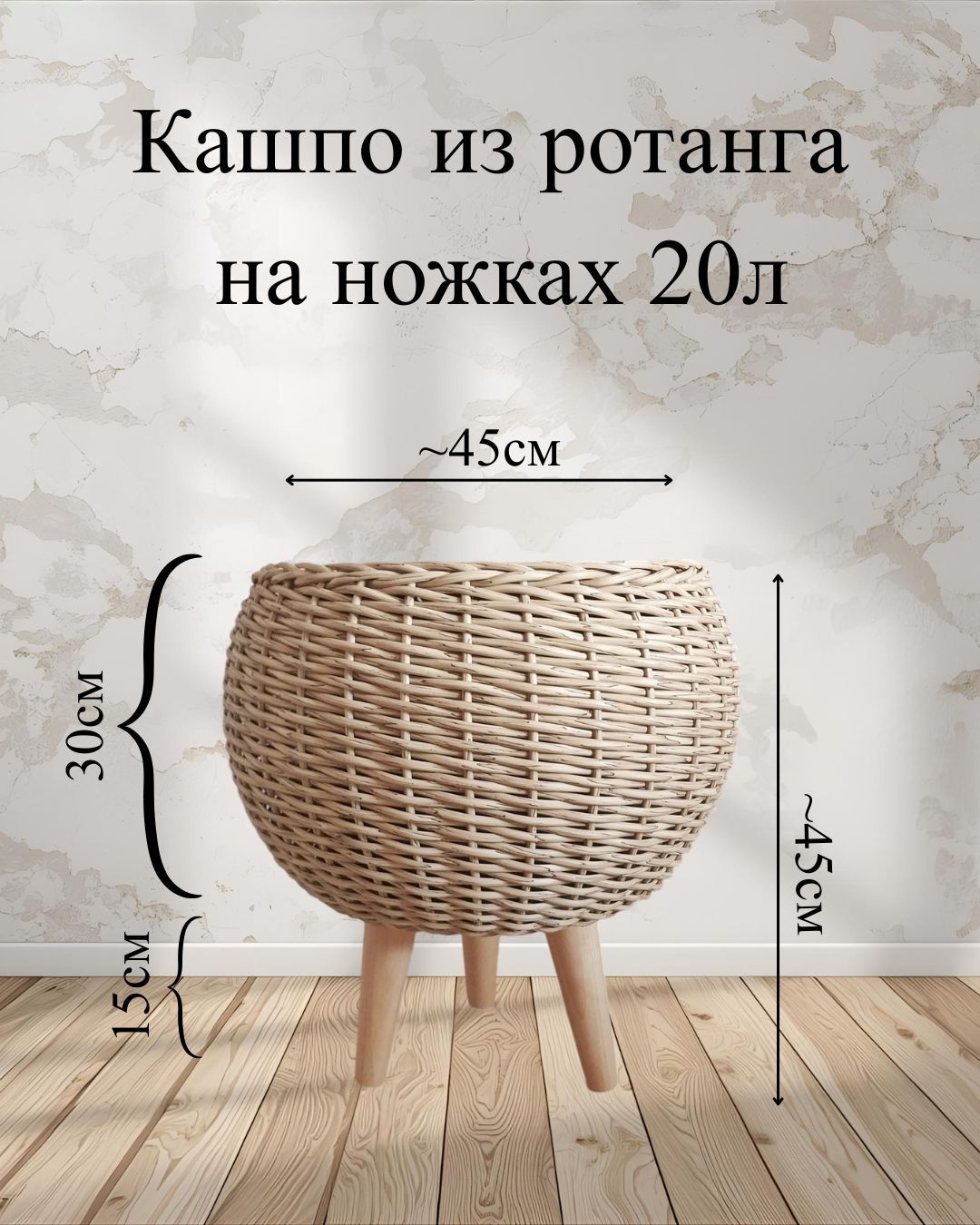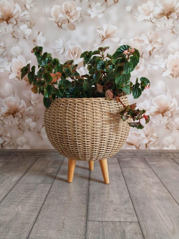 Кашпо из ротанга на ножках 15см