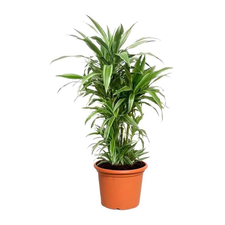 Драцена Фрагранс Драгон — потрясающий сорт драцены с длинными изогнутыми листьями с заметной центральной полосой яркого желто-зеленого цвета. Листья глянцевые и слегка заостренные, что придает растению элегантный и утонченный вид. Обычно используется в качестве декоративного растения как в жилых, так и в коммерческих помещениях. При правильном уходе Драцена Фрагранс Драгон может расти в различных условиях освещения и является отличным выбором для новичков, которые ищут неприхотливое, но красивое комнатное растение.