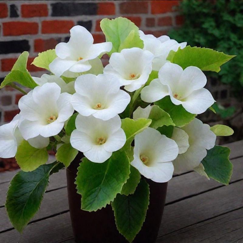 Глоксиния «Монблан» (Mont Blanc) — популярный клубневой многолетник с крупными (до 8–10 см) белоснежными бархатистыми цветками-колокольчиками. Компактное растение высотой 25–30 см цветет обильно с июня по август, образуя «букет» из цветов на высоких цветоносах. Листья темно-зеленые, опушенные, розетка плотная. Характеристики и уход: Цветки: Белые, простые, колокольчатые, лепестки могут быть узорчатыми.Освещение: Предпочитает яркий, но рассеянный свет, без прямых солнечных лучей.Полив: Регулярный, умеренный, предпочтительно в поддон, избегая попадания воды на листья и клубень.Почва: Легкая, питательная, например, смесь для сенполий.Зимовка: После цветения (с сентября) полив прекращают, растение сбрасывает листья и уходит на покой. Клубни хранят в прохладе в темном месте.