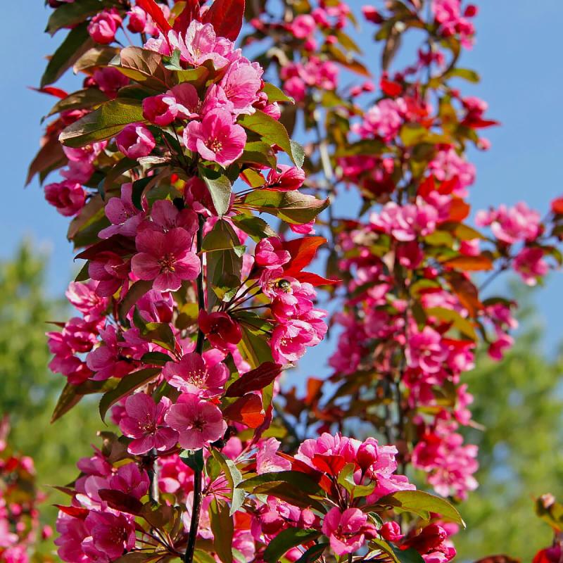 Декоративное среднерослое дерево, достигающее высоты 5-6 метров, имеющее ажурную крону округлой формы. Раскидистость кроны взрослого дерева может достигать 5 метров. Ежегодный прирост побегов дерева составляет 25-35 см.Листья за сезон меняют окрас – от светло-коричневого до сочно-зеленого. Цветение яблони начинается поздней весной (конец мая) и длится несколько недель. В этот период дерево покрывается пышными насыщенно-розовыми цветами, образующими ажур. Аромат при этом невероятно яркий, сладкий и стойкий. Плодоношение начинается в конце августа и продолжается до первых заморозков. В это время дерево становится багряно-красным и продолжает украшать участок или сад. Обильное цветение и плодоношение наблюдается на второй год роста дерева. Яблоки у дерева съедобные. Они характеризуются небольшими размерами – диаметр до 3 см, правильной формой и необычным вкусом. Яблоки имеют темно-красный окрас, жесткую кожицу, умеренную сочность. По вкусу они кисло-сладкие с выраженной терпкостью.