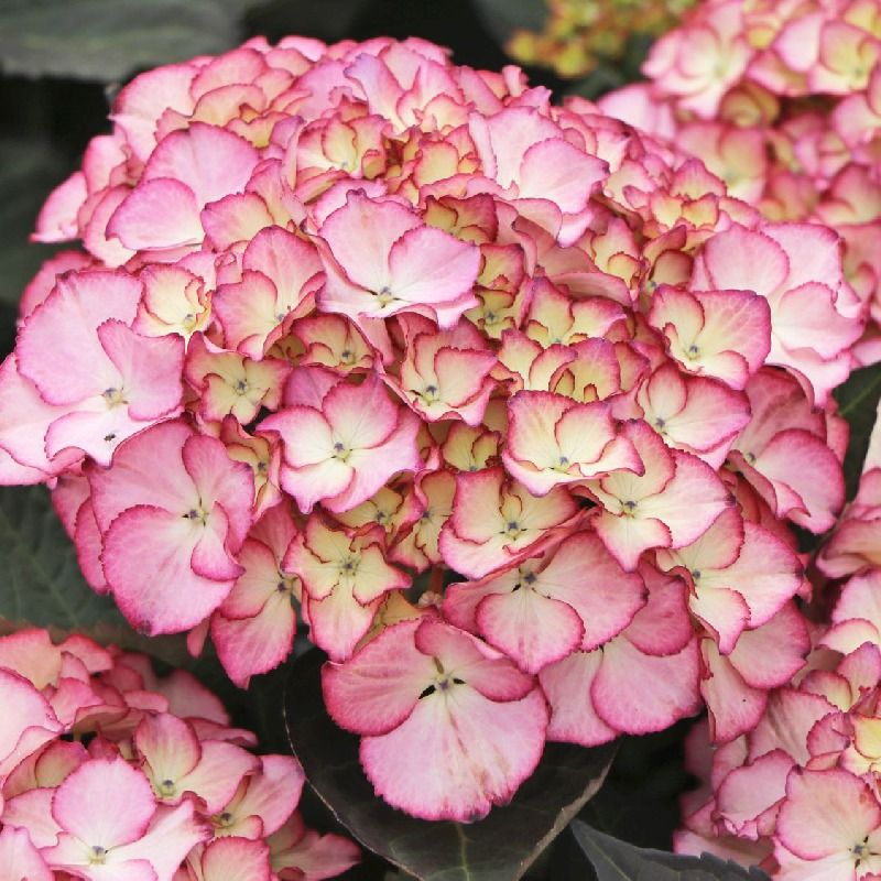 «Адула» (Hydrangea macrophylla Adula) — сорт крупнолистной гортензии (макрофилы). Подходит для клумб, бордюров, вазонов и декоративных композиций. Крупные шаровидные соцветия в оттенках светло-розового или сливочного, с яркой фуксиевой или малиновой каймой по краям лепестков. В зависимости от pH почвы появляются фиолетовые, сиреневые, лаймовые или даже жёлтые акценты.