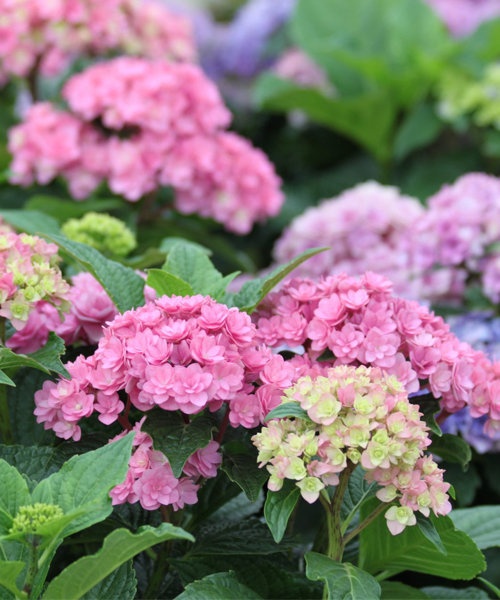 Высота — от 0,6 до 1 метра, ширина — от 70 до 90 см. Соцветия: шарообразные, образуются на концах стеблей, достигают в диаметре 20 см. Состоят из крупных цветков размером 2–3 см каждый. Окраска: сначала светло-зелёная, позже — розовая, голубая или сиреневая. Осенью окраска соцветий становится ещё более интенсивной: фиолетовой, тёмно-розовой или вишнёвой. Оттенок цветков можно регулировать, экспериментируя с кислотностью почвы.