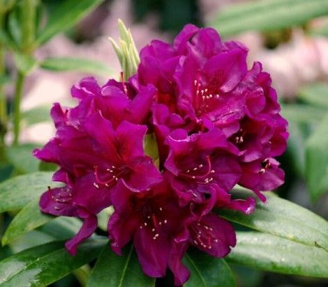 «Полярная ночь» (Rhododendron 'Polarnacht) — гибридный вечнозелёный кустарник. Высота: 1–1,5 м при диаметре кроны 1,2–1,5 м.