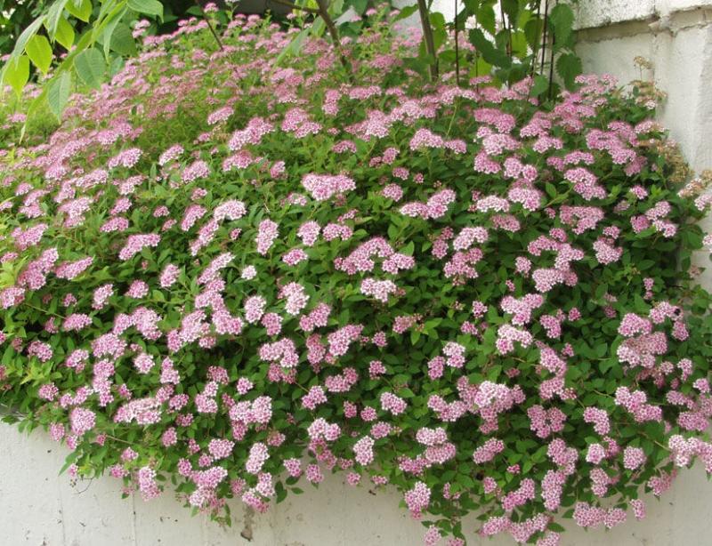 Цветение у сорта обильное и продолжительное, оно начинается в мае и заканчивается в сентябре. Цветы мелкие, ароматные, бледно-розовые или красно-пурпурные, собраны в плотные соцветия-щитки.