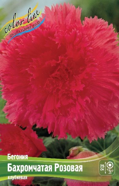 Бегония Кустовая Бахромчатая розовая ('Fimbriata Pink') — это клубневое компактное растение высотой 20-30 см с пышными, крупными, махровыми соцветиями нежного розового оттенка и характерными резными краями лепестков.