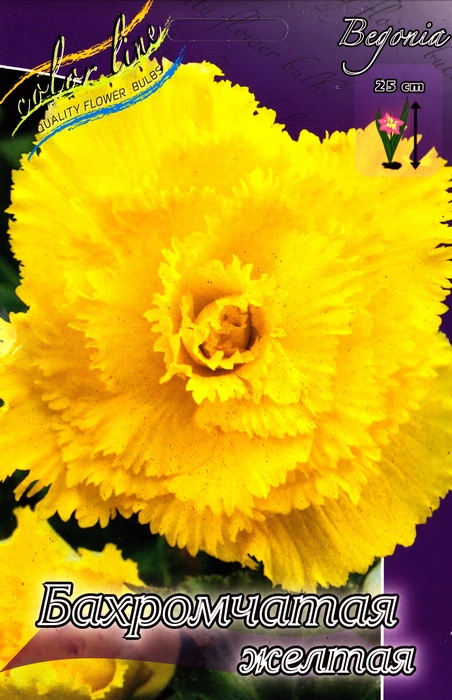 Бегония Бахромчатая Желтая — это многолетнее клубневое растение с пышными, ярко-желтыми махровыми цветками, края которых напоминают гвоздику.