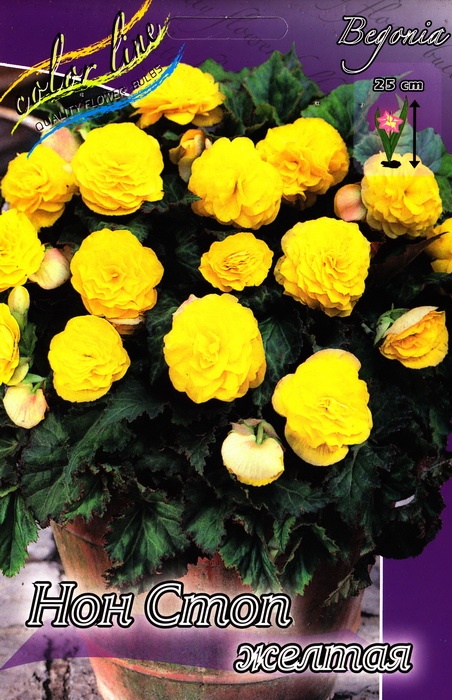 Бегония «Нон Стоп Желтая» — это клубневая бегония с обильным, непрерывным цветением (отсюда и название «Non-Stop»), образующая компактные, хорошо ветвящиеся кустики высотой 20-30 см, покрытые крупными, густомахровыми желтыми цветами до 10 см в диаметре. Она ценится за яркие, устойчивые к дождю цветки и темно-зеленый или бронзовый лист, идеально подходит для кашпо, горшков, бордюров, предпочитает полутень и не выносит прямых солнечных лучей.