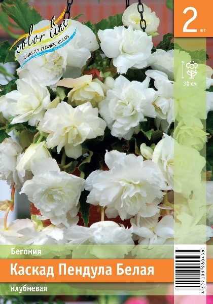 Бегония Каскад Пендула Белая — эффектное ампельное клубневое растение с длинными свисающими побегами и темно-зелеными листьями, которое создает эффект "цветочного водопада" благодаря обильным белоснежным, часто махровым, цветам диаметром до 8 см, идеально подходит для подвесных кашпо и балконов, предпочитает полутень и нуждается в умеренном поливе, чтобы не загнивать.