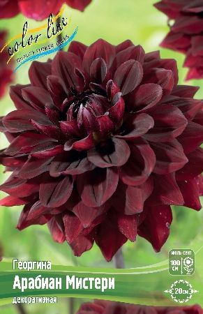 Георгина 'Арабиан Мистери' (Arabian Mystery) — это крупноцветковая декоративная георгина с мощным кустом, известная своими бархатистыми темно-бордовыми цветками, почти черными у центра, с плоскими, слегка закрученными лепестками; идеально подходит для клумб, миксбордеров и срезки, создавая эффектные садовые композиции.