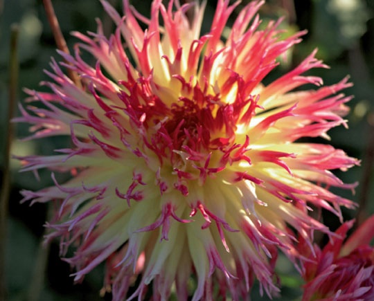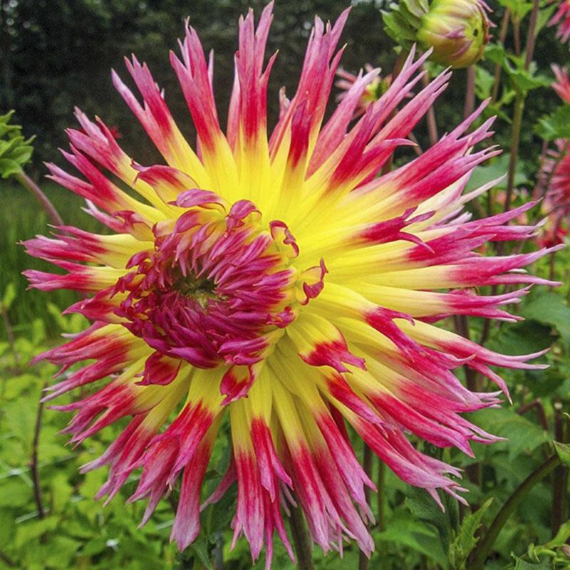 Внешний вид цветка: Отличительная особенность сорта — крупные, эффектные соцветия-корзинки с оригинальными, тонкими, слегка зазубренными и скрученными по краям лепестками, что придает им "бахромчатый" или "кактусовидный" вид.