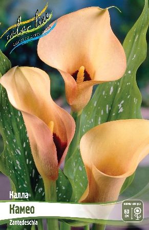 Калла Камео (Cameo) — эффектный сорт зантедескии (Zantedeschia), отличающийся теплой цветовой палитрой и декоративной листвой.