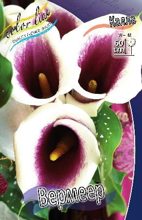 Калла Вермеер (Vermeer) — это эффектный сорт каллы Эллиота (Zantedeschia elliottiana), отличающийся контрастной двухцветной окраской и декоративной листвой. Сорт назван в честь знаменитого голландского художника Яна Вермеера.