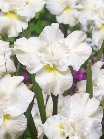 Ирис сибирский 'Swans in Flight' (Свонс ин Флайт) — это многолетнее растение, ценящееся за его крупные, элегантные цветы и неприхотливость. Название сорта переводится как «Лебеди в полете» и точно передает форму и внешний вид его цветков.