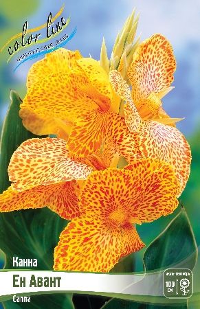 Канна сорта 'En Avant' – это многолетнее корневищное растение с яркими, желтыми цветками, усеянными красными или оранжевыми крапинками, и крупными декоративными листьями. Она ценится за свой экзотический вид и длительный период цветения.