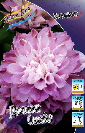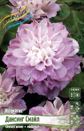 Клематис 'Dancing Smile' — это крупноцветковый махровый сорт с нежно-розовыми или розово-сиреневыми цветками, которые напоминают по форме розы или георгины. Он отличается обильным двухэтапным цветением и относится ко 2-й группе обрезки.