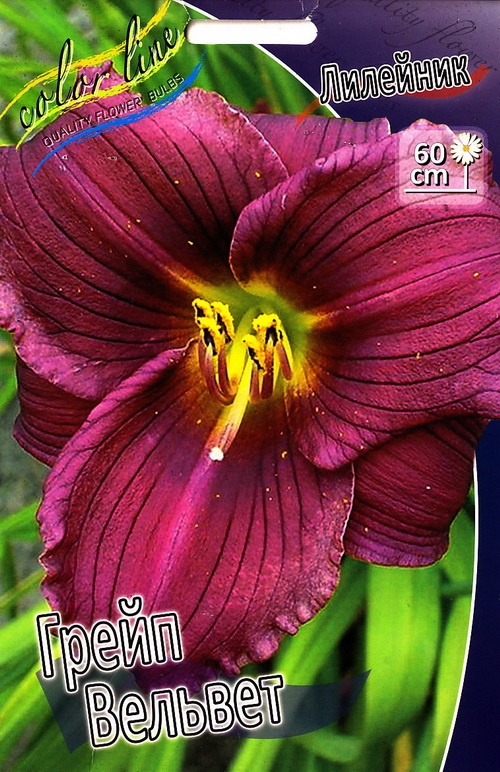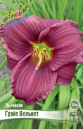 Лилейник «Грейп Вельвет» (Grape Velvet) — гибридный сорт. Куст хорошо разрастается, имеет прямой, прочный цветонос высотой от 55 до 60 см. Листья зелёные.