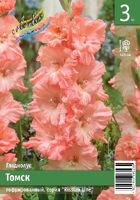 Стебель у Томска средний по высоте — 100-120 см. Растет он прямо вверх, причем покрывается простой зеленой листвой. С биологической точки зрения растение является гибридом. В соцветиях иногда бывает до 15 и даже до 18 цветков. Каждое такое соцветие может доходить по длине до 60 см. Бутоны достигают внушительных габаритов — до 15 см. Цветок: гофрированный, перламутрово-розовый с более светлым центром. Цветение с июля по сентябь. Подходит для выращивания в цветниках, горшках и на клумбах, а также для срезки. Требует выкапывания на зиму.