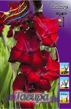 Гладиолус «Тавира» — это сорт с яркими бордовыми цветами.