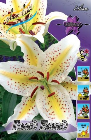 Являясь редким сортом, эта лилия отлично приживается на отечественных приусадебных участках. Одна луковица находит в себе силы выдать крепкий и идеально прямой стебель, сплошь покрытый крупной листвой. Под стать ей и соцветия, достигающие 25 см в окружности. Их основной цвет – снежно-белый. Это идеальное поле для темно-красных вкраплений и широкой желтой полосы посередине. Обе эти черты сорта хорошо заметны на белом цвете, что производит неизгладимое положительное впечатление. Auratum Gold Band (Аур. Голд Бенд) - отличный срезочный материал. Сорт хорош и для высадки вокруг беседок – конечно, если Вас не смутит его сильный и стойкий аромат.