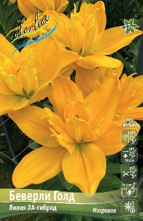 Беверли Голд – высота 120, диаметр цветка 17-20 см. Отличается прекрасными махровыми цветками желтого окраса, которые придадут яркости любой цветочной композиции. Цветут в середине лета 2-4 недели. Прекрасно подходит для срезки .