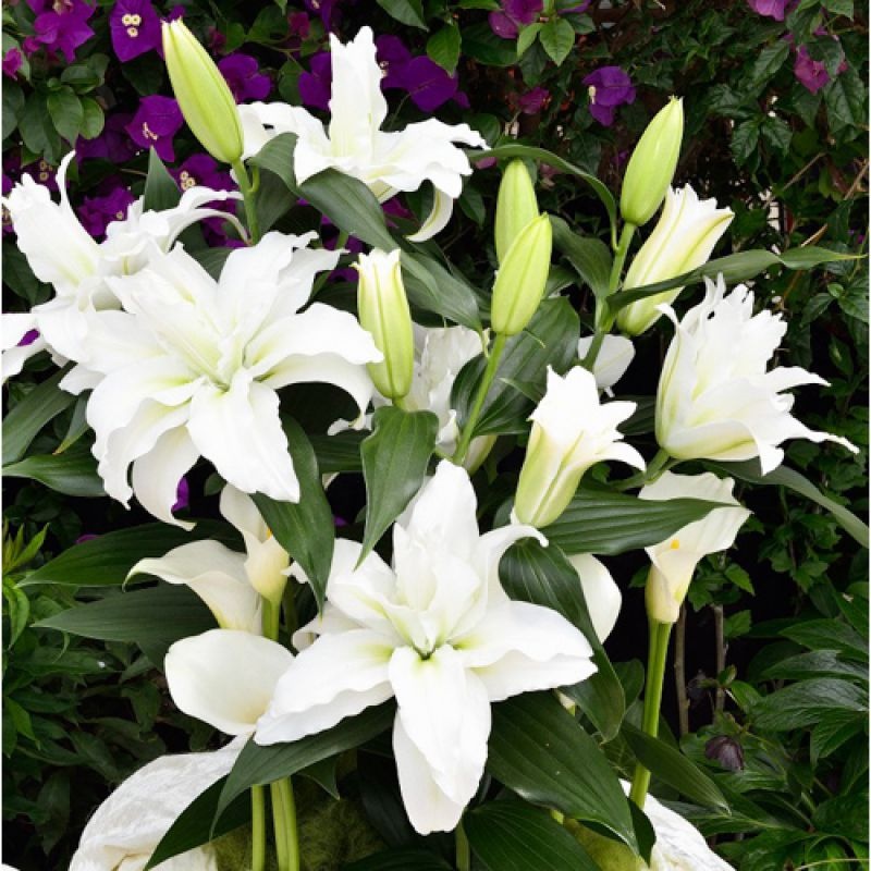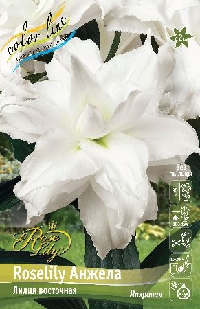 Лилия Roselily Angela (Розели Анжела) – это крупноцветковая, густомахровая восточная лилия белоснежного цвета, без пыльцы (гипоаллергенная), с легким ароматом и волнистыми краями лепестков, высотой до 110 см, цветущая с середины лета до начала осени, идеально подходит для клумб и ваз, так как цветки долго стоят срезанными.
