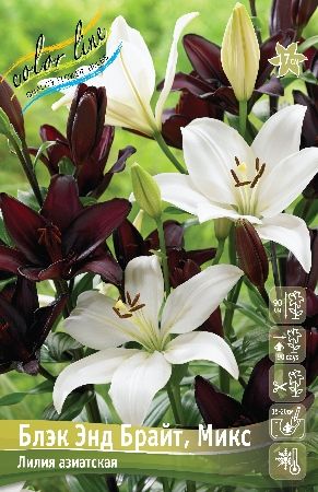 Лилия «Блэк энд Брайт» (Black and Bright) — это контрастный микс (смесь) азиатских гибридов, который включает эффектные черно-бордовые сорта и чистые белые, создавая яркий, запоминающийся эффект «черное и белое». Эти лилии отличаются высокой зимостойкостью, неприхотливостью в уходе, отсутствием сильного аромата и цветением в июне-июле, достигая высоты 60-90 см.