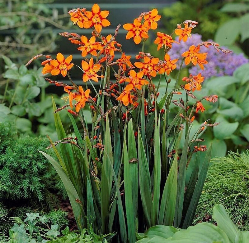 Крокосмия (монтбреция) «Эмили Маккензи» (Emily McKenzie) — это компактный многолетний сорт семейства Ирисовые, известный своими яркими двухцветными цветами и обильным цветением в конце лета.