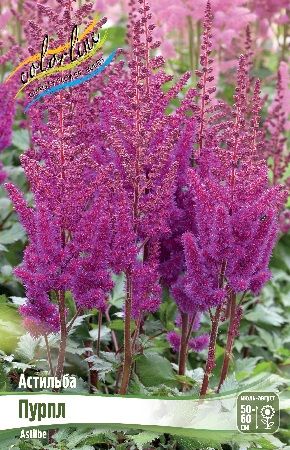 Астильба сорта 'Purple' обычно относится к сорту 'Purple Rain' или 'Purple Glory', которые представляют собой неприхотливые многолетние растения с пышными пурпурно-фиолетовыми или фиолетово-розовыми соцветиями и декоративной листвой.