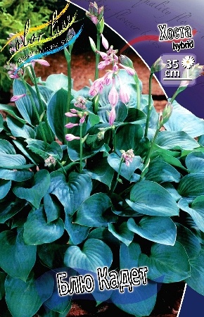 Хоста Блю Кадет – гибридный сорт, высотой до 40 см и шириной до 50 см. Имеет маленькие, около 13 см, синие–зеленые листья, с капельницей на кончике, с текстурой средней плотности. Листья сердцевидные, с небольшим рифлением, матовые сверху, а снизу имеют сизый налет. Голубые в начале сезона, к середине лета, становятся темно–зелеными. Цветки воронкообразной формы, до 8 см в длину, яркого лавандового оттенка, собраны в длинные плотные кисти. Имеют легкий аромат. Цветение начинается в июле. Используют для оформления бордюров или в качестве компаньона в групповой посадке. Реже используют в одиночных посадках. Хоста зимует без укрытия, хорошо переносит морозы.