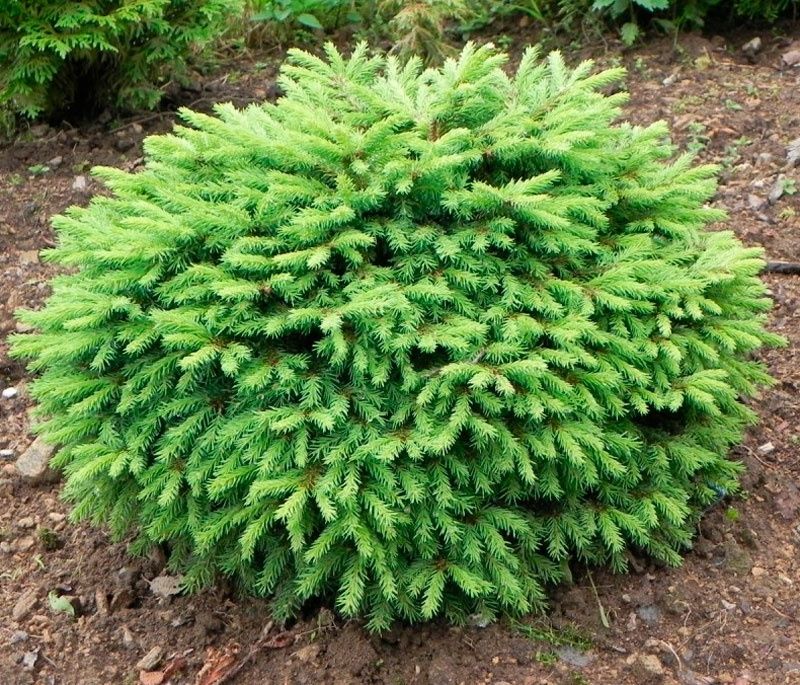 Ель обыкновенная «Нидиформис» — это вечнозелёный кустарник гнездовидной формы. У молодых растений заметно углубление посередине. В высоту ель достигает одного метра, иногда чуть больше, а диаметр кроны может быть в два раза больше.