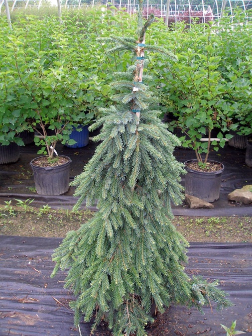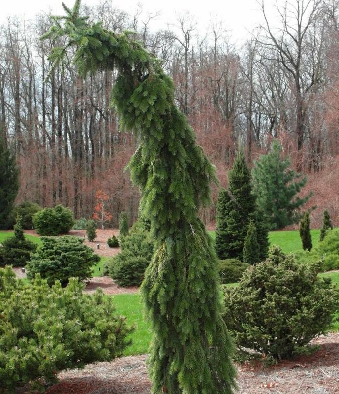 Ель сербская «Пендула» (Picea omorika Pendula) — медленнорастущий сорт с плакучей формой кроны. Ветви свисают вниз, плотно прижимаясь друг к другу, благодаря чему создают плотную фактуру. Центрального ствола нет, опора формируется из нескольких основных веток. Высота взрослого дерева — 8–10 м, диаметр кроны — около 1,5 м.