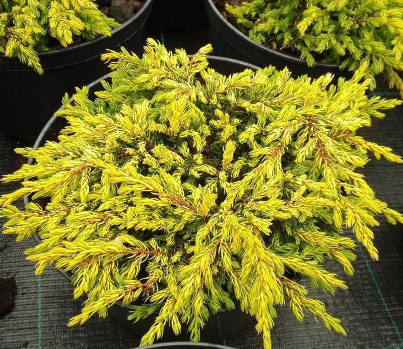 «Голдшатц» (Juniperus communis Goldschatz) — низкорослый стелющийся кустарник с объёмной распростёртой кроной. Высота — в среднем 30–40 см, диаметр — 50–170 см.