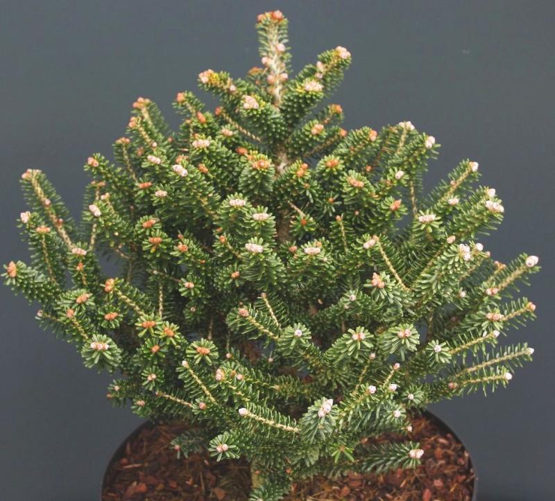 Шишки: располагаются вертикально, близ концов побегов прошлого года, фиолетово-пурпурного цвета.