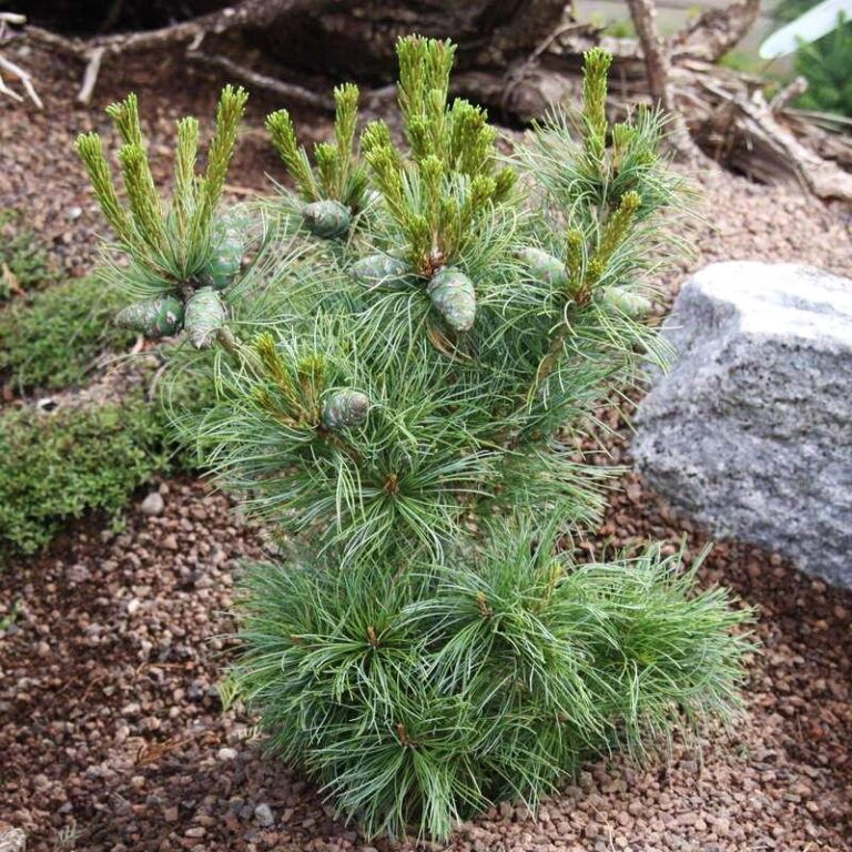 «Шунс Бонсай» (Pinus parviflora «Schoons Bonsai») — карликовый сорт мелкоцветковой сосны, происходящий из горных районов Японии. Название связано с тем, что ствол ветвится от основания, создавая своеобразный бонсай. Высота — до 2 м, ширина — 1,5 м.
