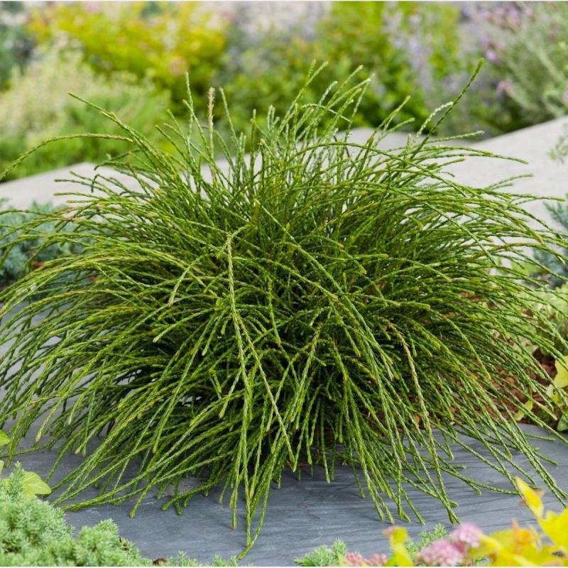 В зрелом возрасте высота — около 1–1,5 метров. Диаметр кроны — до 1,5 метров. Ежегодный прирост небольшой, что позволяет растению сохранять декоративность без частых обрезок. Хвоя чешуевидная на молодых приростах и нитевидная на взрослых побегах. Окраска: летом зелёная с лёгким бронзовым оттенком, зимой становится бронзово-коричневой, сохраняя декоративность.