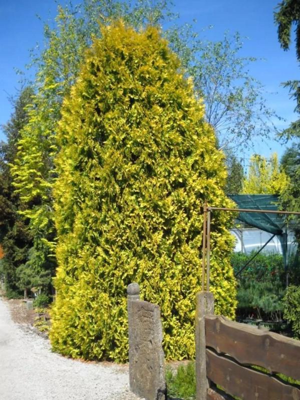 Туя западная 'Europa Gold' – это популярный декоративный сорт, выведенный в Нидерландах в 1974 году. Она ценится за свою узкопирамидальную форму кроны и яркую золотисто-желтую хвою, которая меняет оттенок в зависимости от сезона.