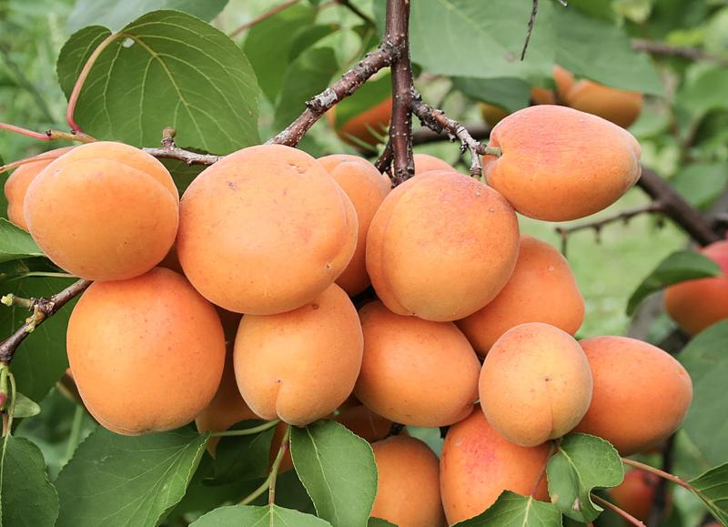 Плоды большие, набирают вес по 70-120 г. По форме они удлинённо-овальные. Кожица окрашена в насыщенный оранжевый цвет с румянцем в виде красных точек, которые покрывают поверхность на 10-30%. Внутренняя часть светло-оранжевого цвета, характеризуется мясистостью, средней твёрдостью, гармонией кислоты и сладости во вкусе, ароматностью. Косточка у этих абрикосов мелкая. От мякоти у зрелых плодов отходит без проблем, у перезревших — с трудностями.