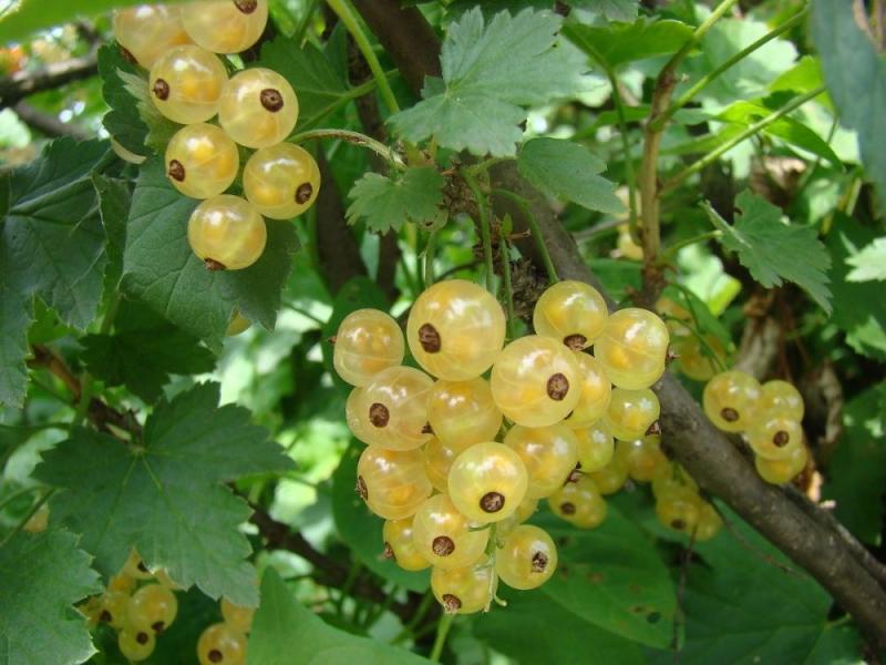 Ягоды среднего размера (0,6–1,0 г), округлые или слегка овальные, белые, блестящие. Плоды характеризуются сладко-кислым вкусом с дегустационной оценкой 4 балла.