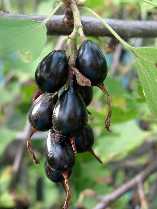 Листья тёмно-зелёные, большие и блестящие, без ярко выраженного смородинного аромата. Осенью опадают поздно.