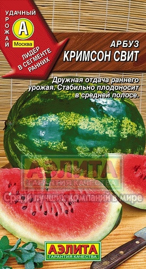 Раннеспелый (67-85 дней) сорт. Растение длинноплетистое до 5-6 м. Плоды округлые, средней массой 3,5-5,0 кг, гладкие, полосатые, кожура светло-зеленая с темно-зелеными полосами средней ширины. Мякоть красная, плотная, сочная и очень сладкая, отличного вкуса. Отличается высокой выравненностью, транспортабельностью и лежкостью плодов. Предназначен для выращивания в пленочных теплицах и укрытиях.