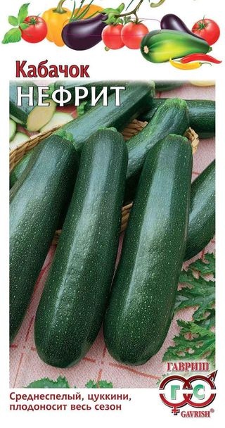 Среднеспелый. Тип цуккини. Период от полных всходов до технической спелости 53-58 дней. Растение кустовое, малоплетистое. Лист среднего размера, зеленый с белой пятнистостью, среднерассеченный, край пильчатый. Плод цилиндрический, гладкий, массой 0,7-1,2 кг. Окраска в фазу технической спелости зеленая, в полной - темно-зеленая с диффузной пятнистостью более светлой окраски. Мякоть светло-кремовая, толстая, волокнистая, очень нежная, сочная. Вкусовые качества хорошие и отличные. Семена эллиптические, белые, гладкие, с кожурой.
