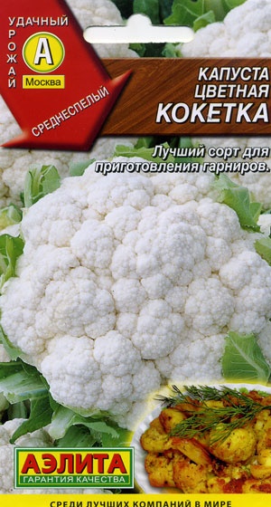 Среднеранний, высокоурожайный сорт с дружной отдачей урожая. Период от полных всходов до технической спелости головок 100-110 дней. Головки белоснежные, плотные, крупные – массой 1,0-1,5 кг, со среднебугристой поверхностью. Рекомендуется для свежего потребления и консервирования, в т.ч. замораживания. Вкусовые качества отличные. Сорт пригоден для весенне-летней и летне-осенней культуры в открытом грунте.