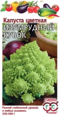 Скороспелый сорт сортотипа Романеско. Розетка листьев приподнятая. Листья среднего размера, серо-зеленые, слабопузырчатые. Головка оригинальной куполообразной формы, светло-зеленая, массой 350-500 г. Ценится за высокое содержание витаминов и микроэлементов, отличные вкусовые качества переработанной продукции, выравненность головок. Товарная урожайность головок 1,6-1,8 кг/м2. Посев на рассаду производят в середине апреля. Пикировка проводится в фазе семядолей. Высадка рассады в грунт в середине мая по схеме 30х50 см. Рекомендуется для непосредственного использования в домашней кулинарии и для замораживания.